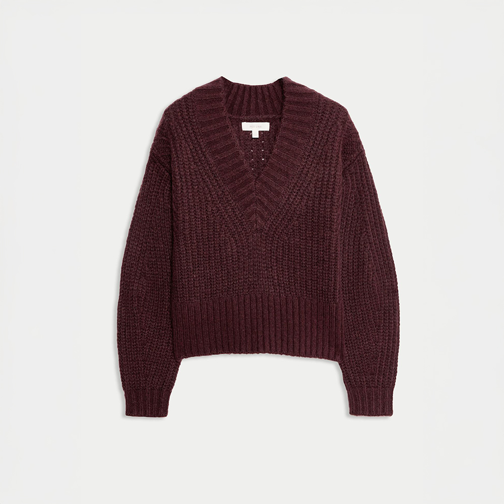 Statement colour is everywhere this autumn, and nothing feels sharper than red. Opt for a vibrant v-neck jumper for women in this season’s key shade and let it take centre stage, balanced with neutrals or denim. It’s the simplest way to add boldness to your autumn wardrobe without overcomplicating the look. Style with straight-leg jeans or a midi skirt for easy, refined impact.